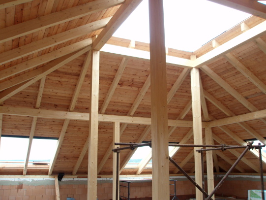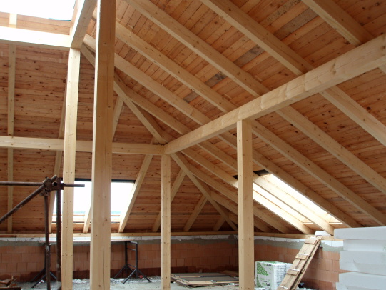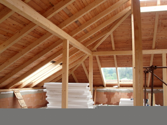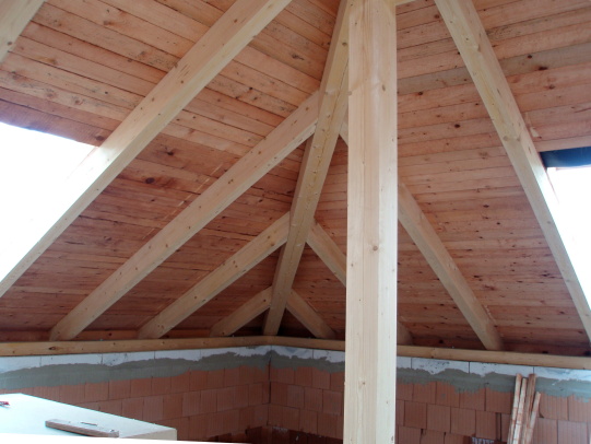 projekčním oddělení naší společnosti. Součástí projekčního řešení zastřešení je i návrh a výpočet statiky střešní konstrukce. Na takto vyrobeném a namontovaném krovu je z vrchu položen střešní záklop z hrubých prken.