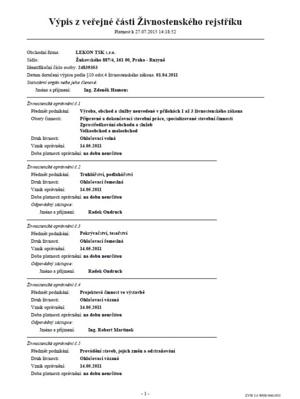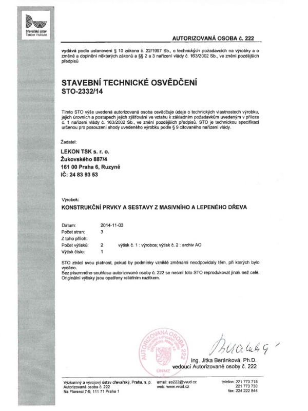 © Lepené dřevěné konstrukce LEKON TSK s.r.o. Všechna práva vyhrazena, 2011 LEKON TSK s.r.o.