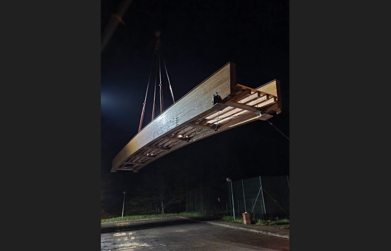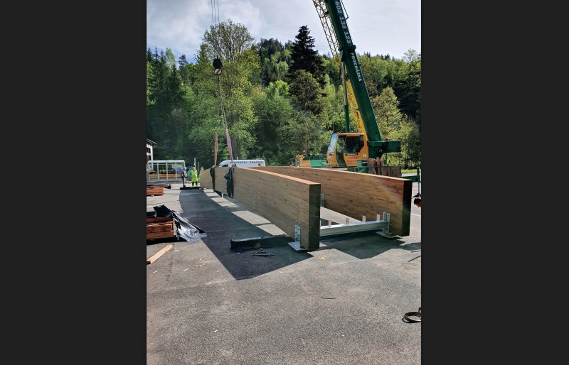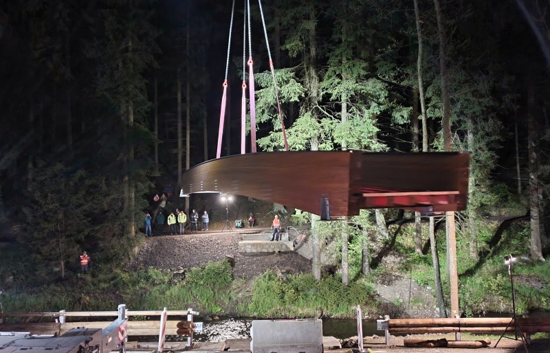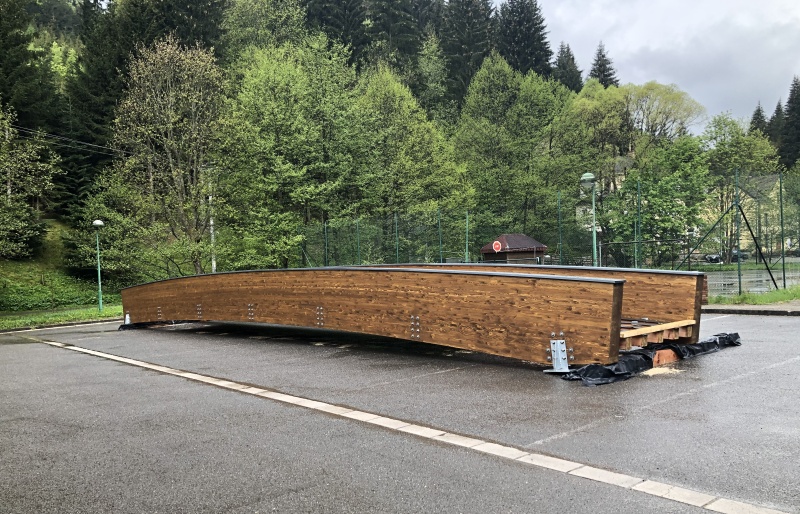 Celková délka lávky je cca 18 m s pochozí šířkou 2 m. Pro ochranu hlavních lepených nosníků je její horní část zakryta plechem, na kterém bude aplikováno ocelové zábradlí. To nebylo předmětem naší dodávky, proto není zatím namontováno a není na na fotogalerii.