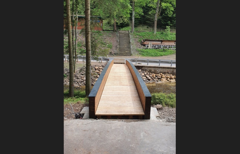 Dřevěná lávka, která je staticky nadimenzována pro pěší turistiku a cyklistický provoz, se nachází v katastru města Teplice nad Metují nedaleko Adršpašsko-teplických skal. Mostní nosnou konstrukci tvoří dvojice lepených plnostěných BSH nosníků doplněnou o ocelové příčníky, na kterých je přes dřevěné podélníky položena vlastní dubová mostovka. Dvojice hlavních lepených nosníků v obloukovém provedení je uložena s převýšením v uložení cca 1,2 m.