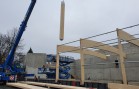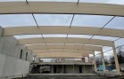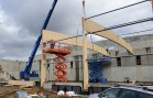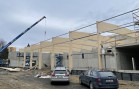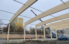 Naše konstrukce zakrývá plochu o rozměrech cca 68 x 22 m, kde bude ledová plocha pro curling současně s restauračním provozem. Ve střešní rovině jsou použity lepené dřevěné obloukové vazníky v osových vzdálenostech 6 m a s nadvýšením cca 0,5 m. Oblouky jsou na jedné straně kotveny do železobetonové stěny a na druhé straně jsou s pomocí ocelových prvků uloženy na dřevěných sloupech opět z lepeného lamelového dřeva, ale nyní již v přímém provedení. Dřevěná konstrukce z důvodu optické subtilnosti je doplněna o ocelové ztužující prvky z trubek a ocelového zavětrování. Tato ocelová ztužidla jsou použita jak ve střeše tak i ve stěně.