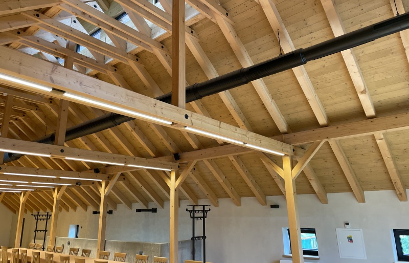 S generální dodavatelem stavby jsme se dohodli na realizaci střešních dřevěných konstrukcí na objektech pivovaru a restaurace. Objekt pivovaru je vyroben a dodán z řezaných KVH hranolů. Část konstrukce je v pohledové kvalitě, část je v nepohledové kvalitě. Na takto vytvořené nosné konstrukci je následně položen střešní záklop z podlahových palubek tl. 24 mm.