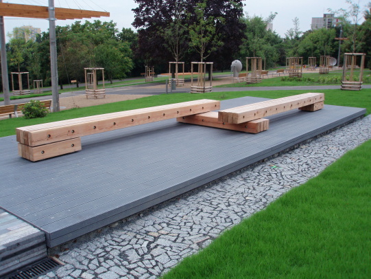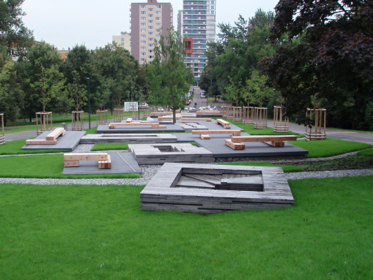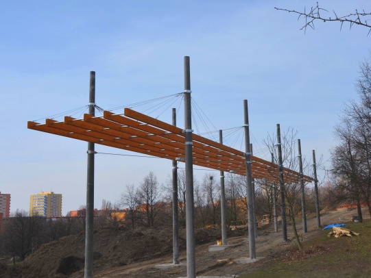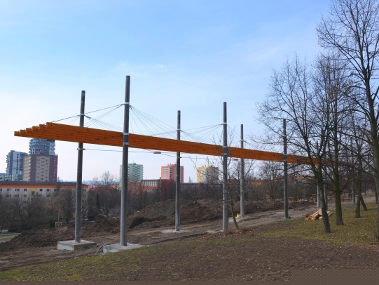 Naše společnost byla vybrána generální dodavatelem stavby na dodávku veškerých dřevěných konstrukcí realizovaných při revitalizaci tohoto parku. Z hlediska architektonického je celý park koncipován pro pasivní i aktivní trávení volného času. Veškeré volné plochy bez stromů budou sloužit jako louky pro krátkodobou rekreaci. Pro nabídku aktivního odpočinku je prostor parku doplněn kromě jiného různými druhy dřevěných konstrukcí. Jedná se např. o objekt Sella Terrena, vodní kaskáda doplněná dřevěnými lavičkami, amfiteátr a vyhlídky s pergolami.