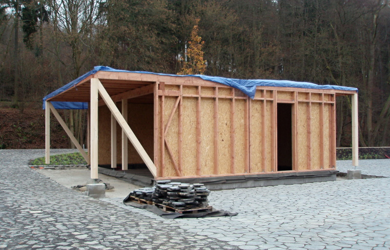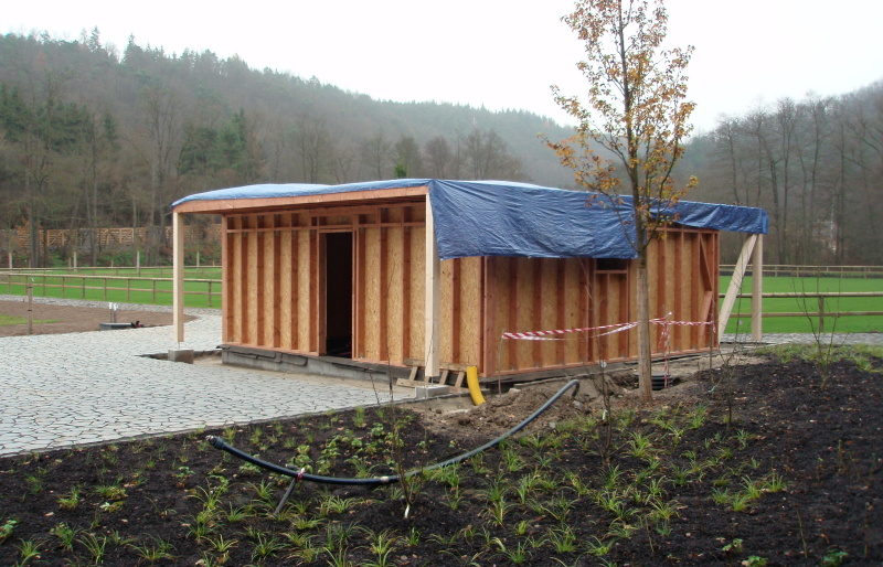Následným doplněním této konstrukce o vkládanou tepelnou izolaci s nezbytnými foliemi a s vnějším modřínovým obkladem vznikne pro potřeby majitele areálu dřevostavba, která bude dosatečně plnit svoje funkce, pro které byla relizována.