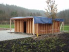 Tato dřevostavba realizovaná z nosných KVH hranolů a opláštěná OSB deskami je ...