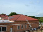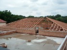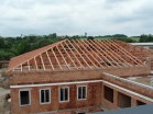 Druhým objektem, na kterém jsme se podíleli a to právě dodávkou střešních konstrukcí, je pavilon učeben. Konstrukce krovu o půdorysném rozměru cca 28 x 19 m je tvořena dřevěnou vaznicovou soustavou ve tvaru sedlové valbové střechy. Celá realizace je provedena z řezaného nehoblovaného smrkového masivu. Na takto vytvořené klasické nosné konstrukci je natažena parotěsná folie, systém latí a kontralatí pro pokládku střešní krytinu. Střešní krytinou je pálená střešní taška Tondach.