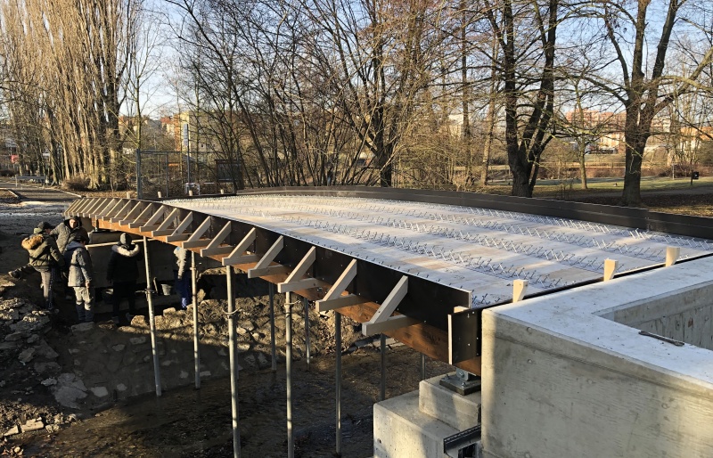 Součástí naší dodávky je i pomocné dřevěné bednění, které bude následně po vytvrzení betonu odstraněno. Rovněž bude naší společností následně doděláno dřevěné zábradlí.
