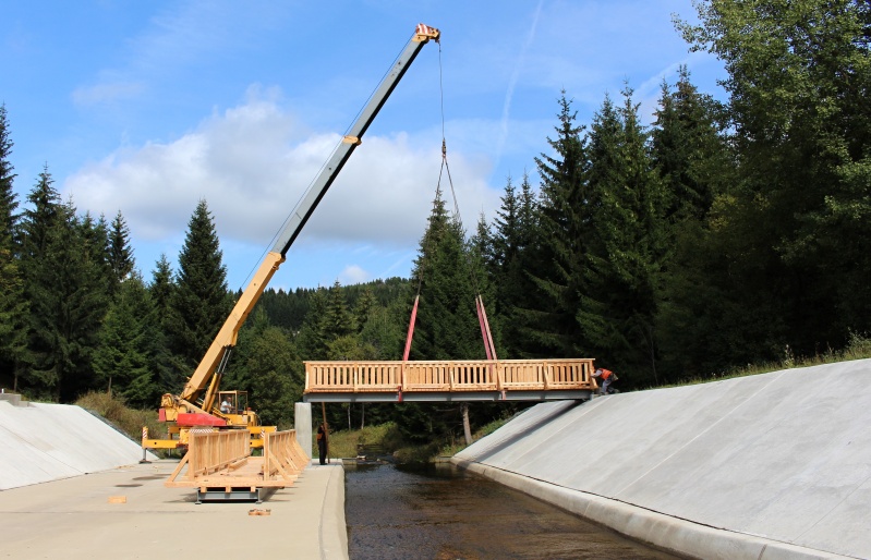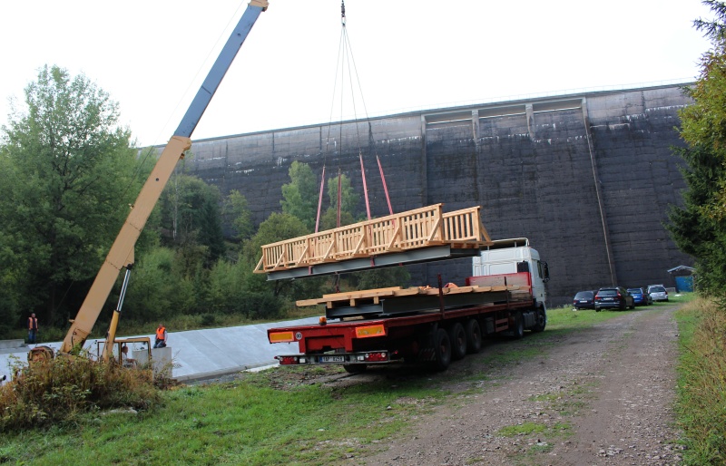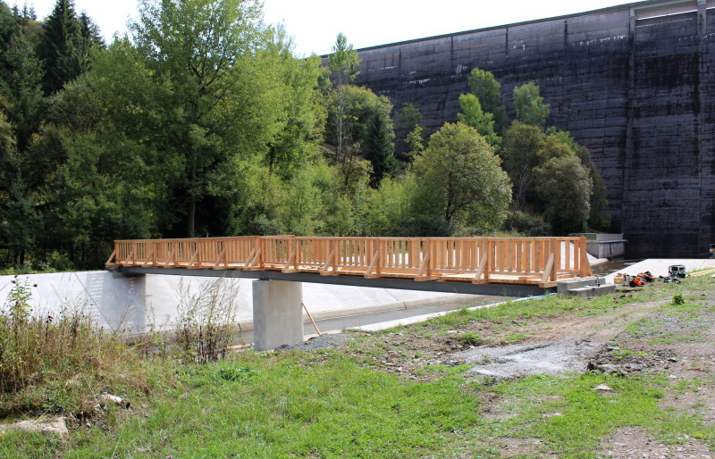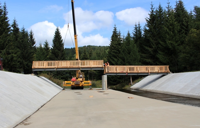 Technologická lávka u paty přehrady, která byla realizovaná v rámci stavby Infocentra Fláje má ocelodřevěnou nosnou konstrukci. Vlastní mostovka a zábradlí jsou modřínu, ošetření dřevěných částí je provedeno impregnací proti dřevokazným škůdcům a houbám s následným bezbarvým lazurovacím látěrem.