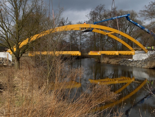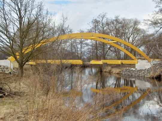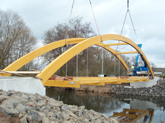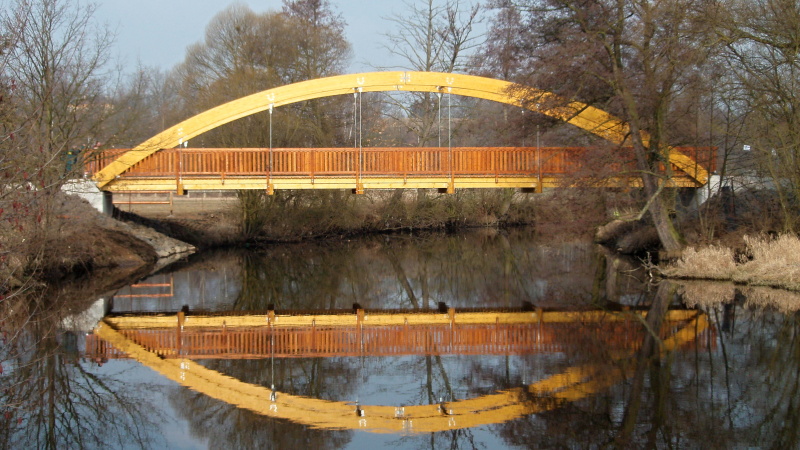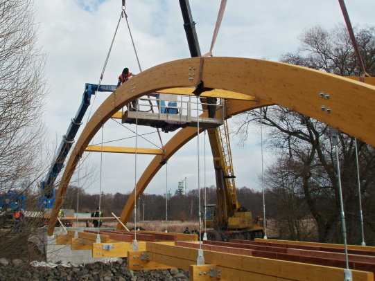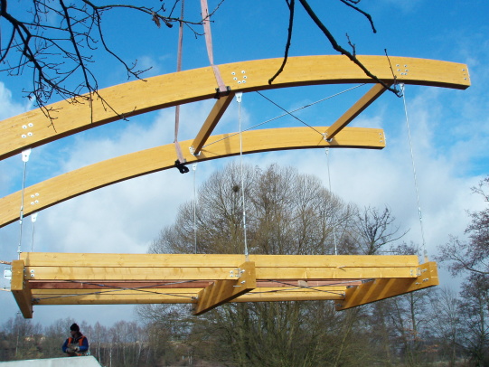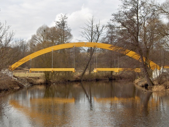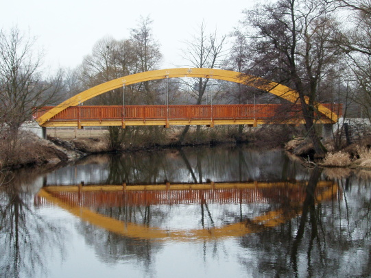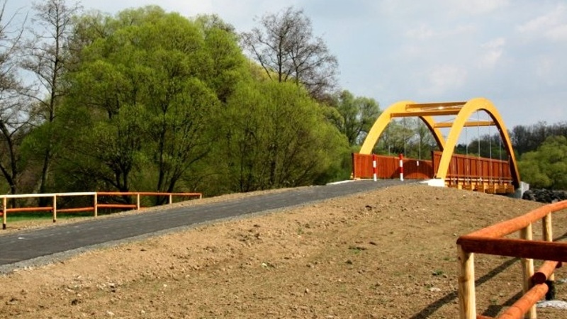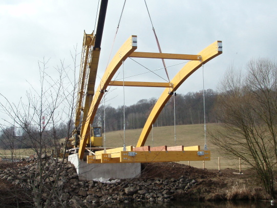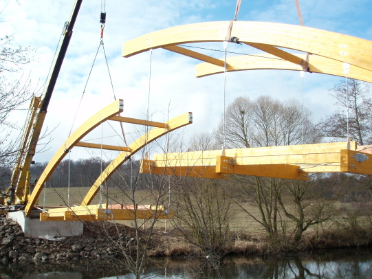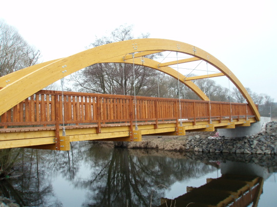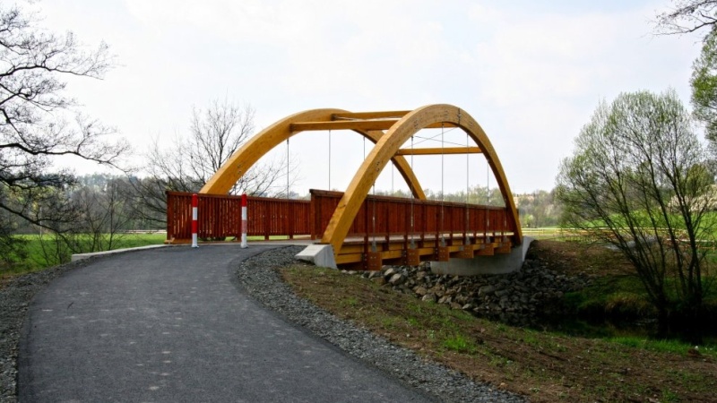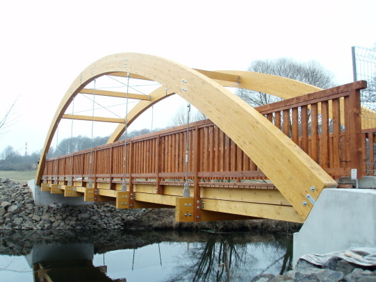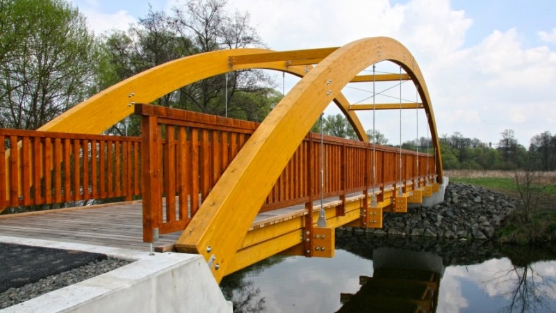 Dřevěná lávka na cyklostezce mezi Chebem a Sokolovem je dlouhá něco málo přes 28 m s průchozí šířkou 3,65 m. Hlavním nosným prvkem jsou trojkloubové obloukové nosníky s konstantním průřezem 240/595 mm. Prostorovou tuhost oblouků zajišťují čtyři dřevěná lepená ztužidla s ocelovými táhly. Mostovka je na oblouky zavěšena po 4 metrech pomocí ocelových táhel průměru 24 mm. Konstrukce mostovky je tvořena soustavou příčníků, podélníků a doplněna o ocelové zavětrování. Staticky působí oblouky a mostovka samostatně. Reakce od oblouků jsou přenášeny přes ocelová ložiska do železobetonových opěr.