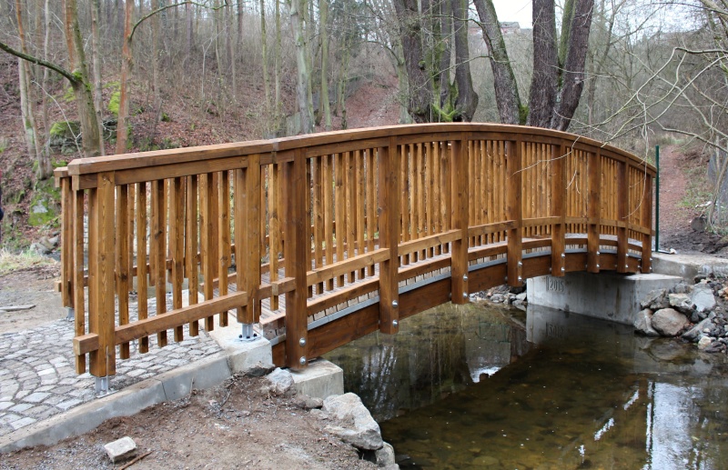 Pro přemostení Tismenického potoka je navržena dřevěná lávka o 1 poli s rozpětím 7 m, která z architektonického hlediska nejlépe zapadá do přírodního prostředí Tismenického údolí a koncepčně navazuje na blízkou lávku přes povodňovou propust.