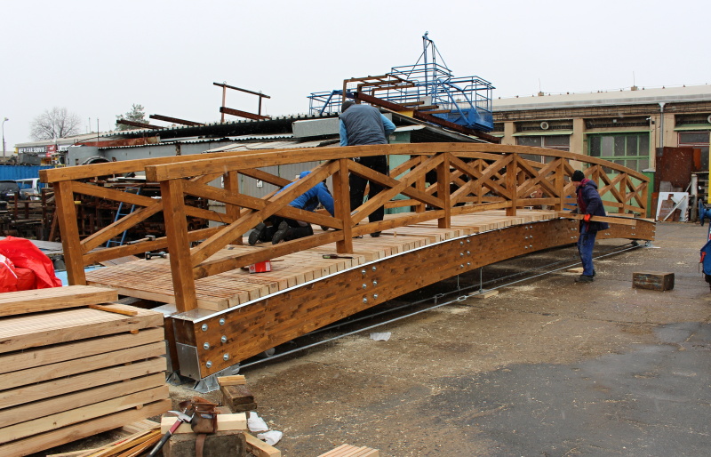 Fotogalerie předmontáže lávky, transportu a usazení :