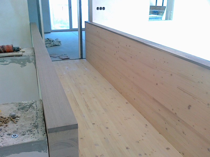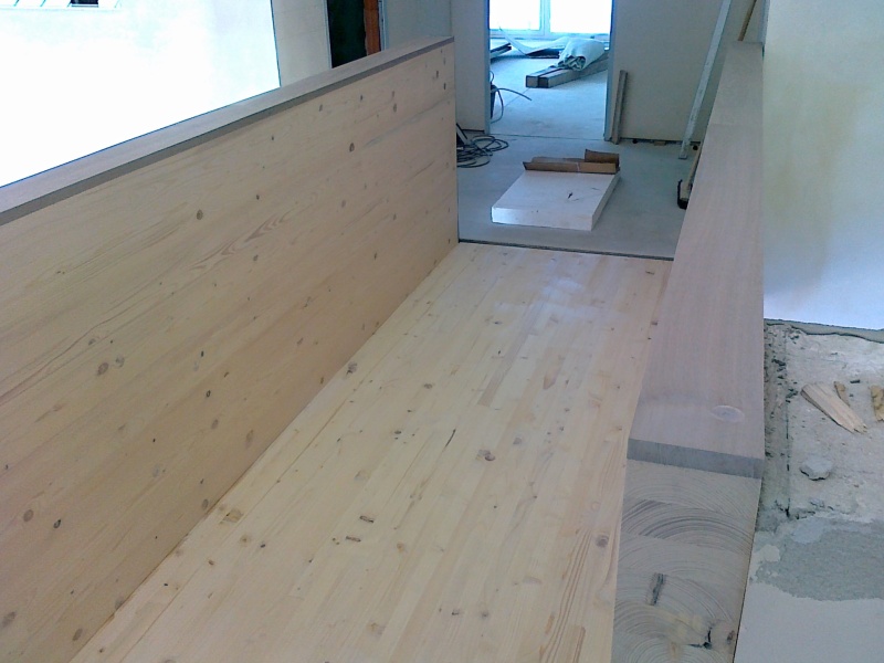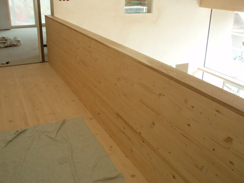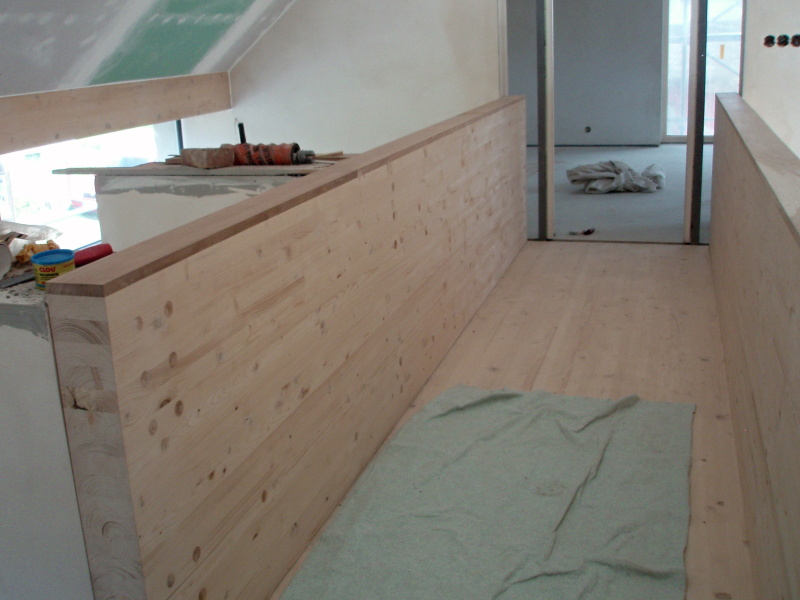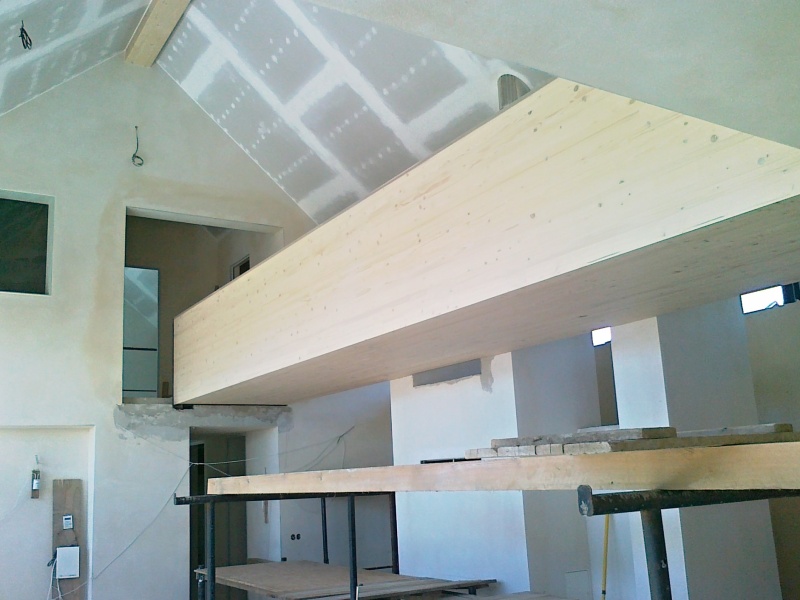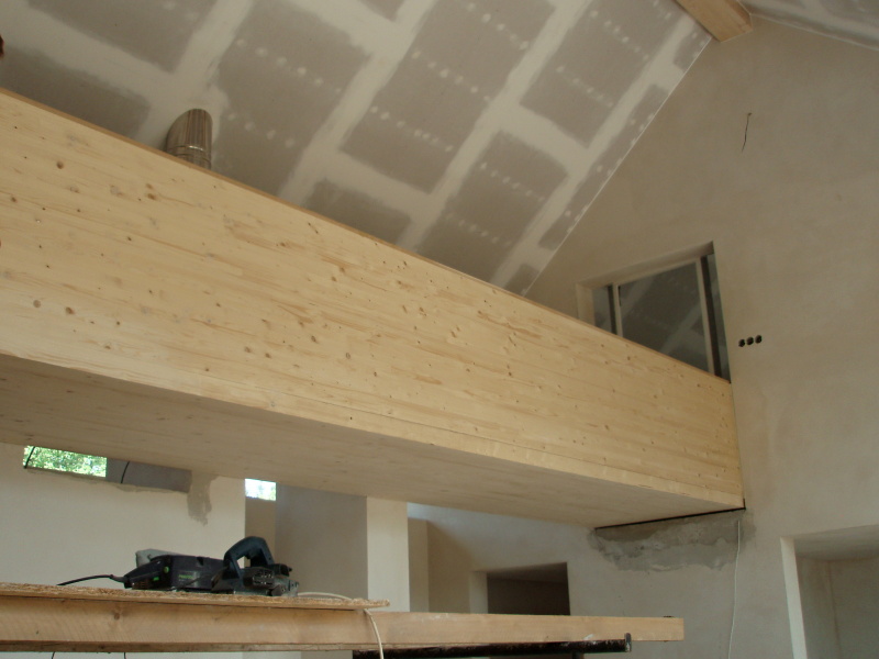 Realizace vnitřní lávky spojující v prvním patře levou a pravou část objektu rodinného domu je vyrobena z lepeného lamelového dřeva v přímém provedení. Vrchní část svislých nosníků je opatřena dubovou naklíženou lamelou. Velkým problémem při této realizaci byl vlastní transport a usazení lepených nosníků ve vnutřní části domu. Nemohl být použit žádný transpotrní jeřáb, ani jiný mechanizmus, vše bylo prováděno pouze ruční manipulací a transportem.