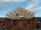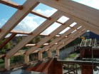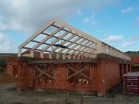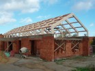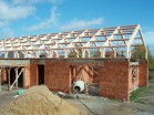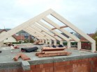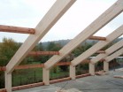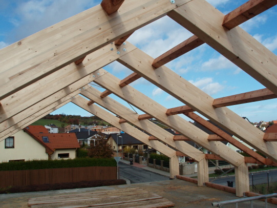 Na stavbě rodinného domu v Lánech je na části objektu realizováno druhé nadzemní podlaží z lepených sedlových vazníků. Sedlové vazníky vytvářející rámovou konstrukci mají rámový roh lepený a to velkým zubovitým spojem.