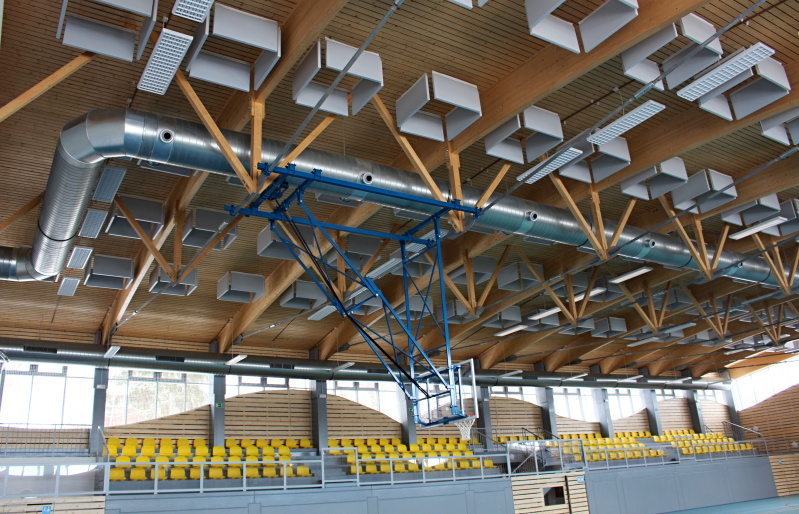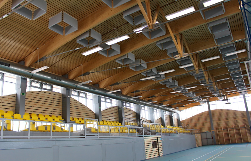 Nosnou konstrukci střechy na multifunkčním objektu o půdorysných rozměrech cca 51 x 25,5 m, která je realizován především jako tělocvična u základní školy v Kašperských Horách na Šumavě,