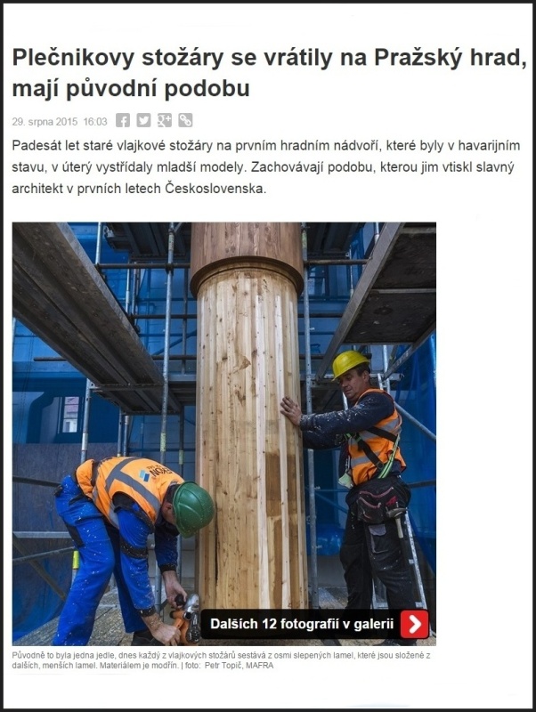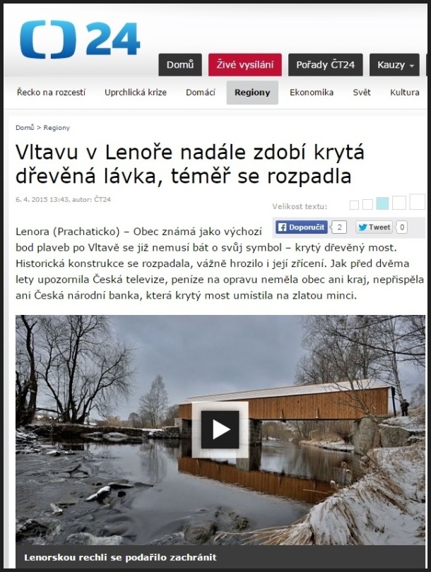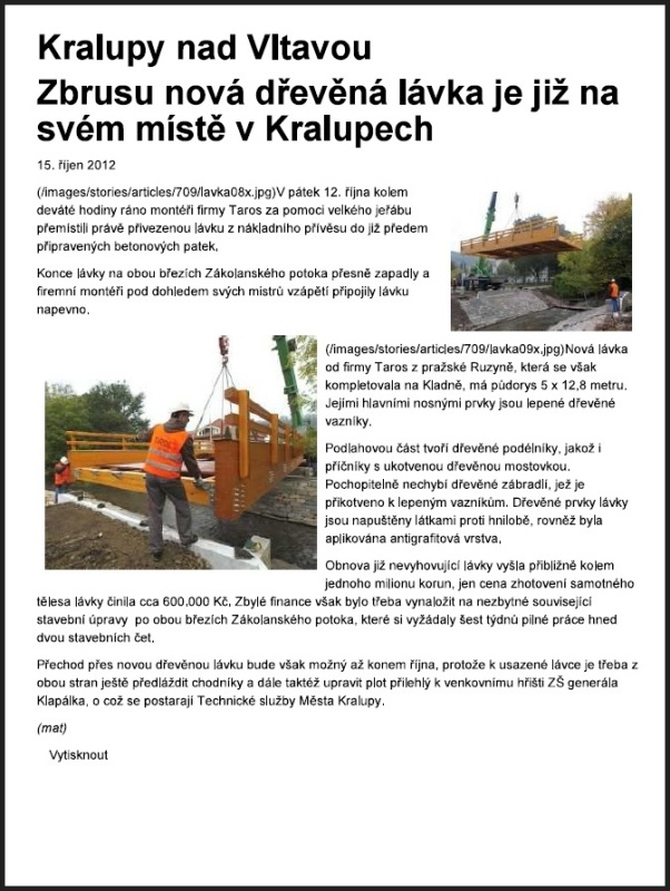 Článek, který popisuje a zobrazuje dodávku dřevěných sloupů I. hradního nádvoří Pražského hradu... více / zde Článek iDNES.CZ o stavbě lávky " RECHLE " v Lenoře na Šumavě... článek / zde Článek o stavbě lávky v Kralupech nad Vltavou ( lávka u Gymnazia )... článek / zde Prezentace dřevěných lávek na webových stránkách zámeckého parku ve Vetrusích... čánek / zde |
