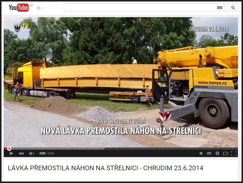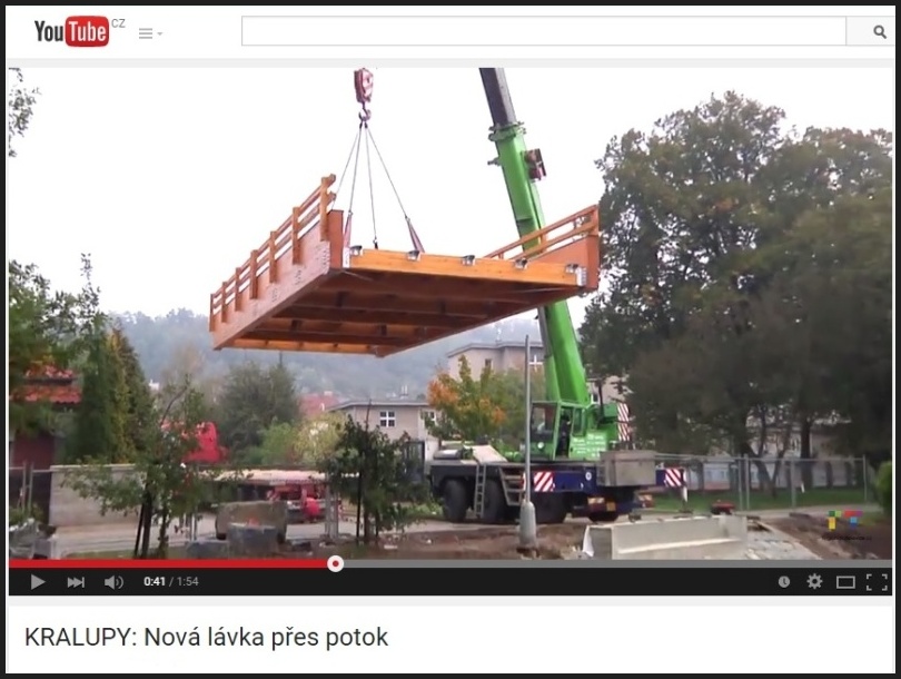 Záběry prezentované na YouTube po otevření Rozhledny Světlý vrch v Albrechticích... video / zde Česká televize a její reportáž o lávce "RECHLE" v Lenoře na Šumavě... video / zde TV Chrudim a její reportáž o stavbě lávky v Chrudimi na ostrov Střelnice... video / zde Reportáž ČT 24 o stavbě 3D Planetária společnosti Techmania Sciente Center... video / zde Reportáž ze stavby lávky v Kralupech nad Vltavou, lávka u Gymnazia...video / zde Město Hořice na svých www stránkách a na YouTube zveřejnilo video ze slavnostního otevření lávky přes silnici I/35... video / zde |