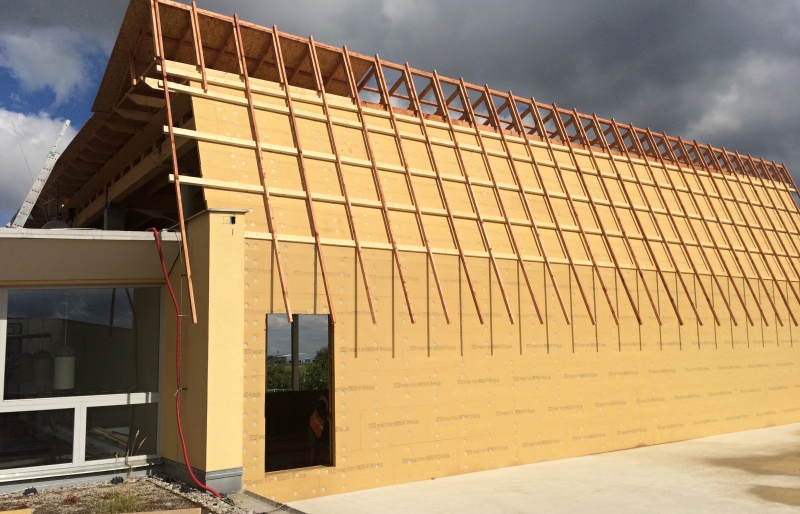 Střešní plášť je odvětrávaný a bude následně ozeleněn.