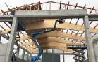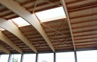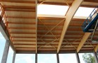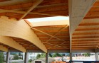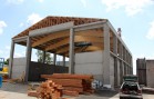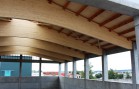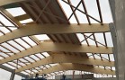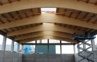 Nosnou konstrukci haly tvoří železobetonové sloupy vetknuté do základových patek, na které jsou uloženy naše dřevěné sedlové lepené nosníky se spodní pásnicí obloukovou. Lepené nosníky a sloupy jsou uloženy s roztečí 5,25 m. Mezi nosníky jsou částečně zapuštěny dřevěné řezané vaznice. Zavětrování ve střešní rovině je zabezpečeno dřevěnými KVH kříži. Na takto vytvořené nosné střešní konstrukci je položen celoplošný dřevěný záklop z podlahových palubek. Ve vrcholu střešních nosníků je vytvořena dřevěná podsada pro kotvení střešního obloukového světlíku. Ten je polykarbonátový.