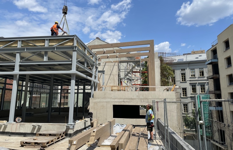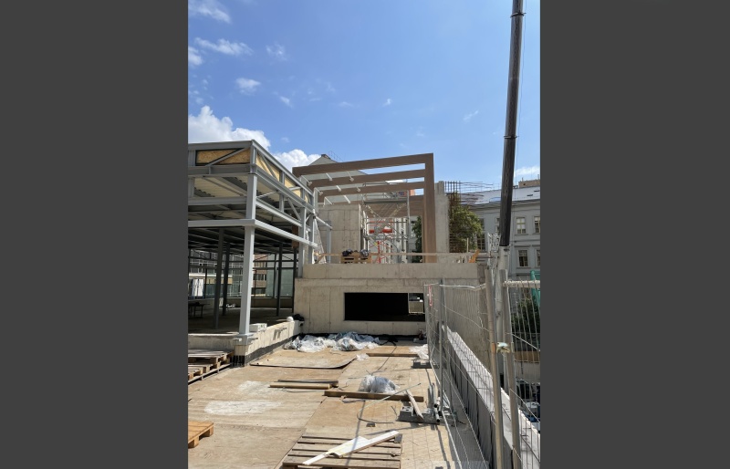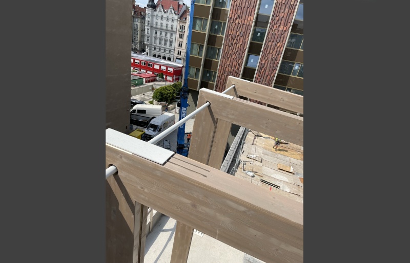 Celá dřevěná konstrukce je navržena a zrealizována tak, aby měla požadovanou požární odolnost R30. Půdorysné rozměry SKYBOXU nejsou velké, jedná se o konstrukci půdorysu 11,84 x 6,17 m s výškou 5,271 m. Zajímavostí a zvláštností na této stavbě bude její opláštění. To bude provedeno pouze skleněnými stěnami a rovněž skleněným stropem.