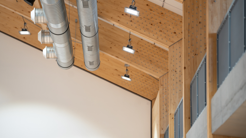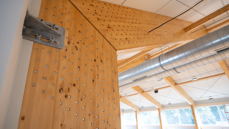 Nosnou konstrukcí haly tvoří dřevěné rámy s lepenými BSH stojkami a střešními BSH sedlovými vazníky s proměnou výškou. Pro zavětrování dřevěné konstrukce jsou použity jak v podélném, tak i v příčném směru ocelové zavětrovací kříže. Půdorysné rozměry takto vytvořené rámové konstrukce jsou cca 34 x 16 m a rámy jsou v osových vzdálenostech 4,2 m.