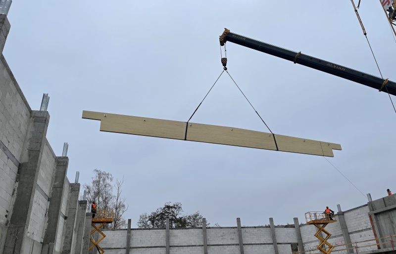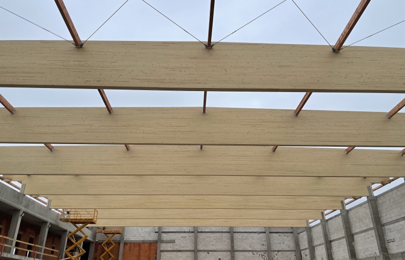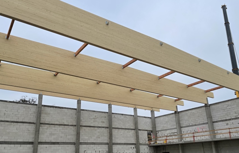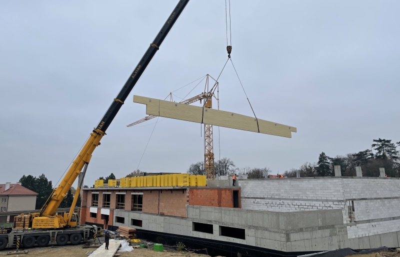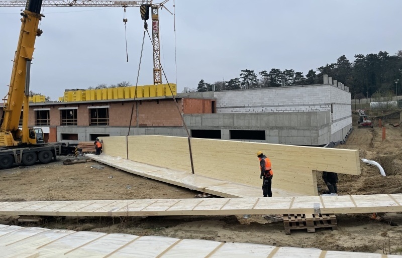 Součástí novostavby sportovní haly je jednopodlažní objekt tělocvičny o půdorysných rozměrech cca 29,3 x 46,5 m. Střešní konstrukcí tvoří lepené dřevěné sedlové vazníky s mírným spádem cca 2%.