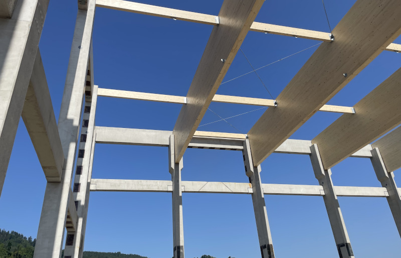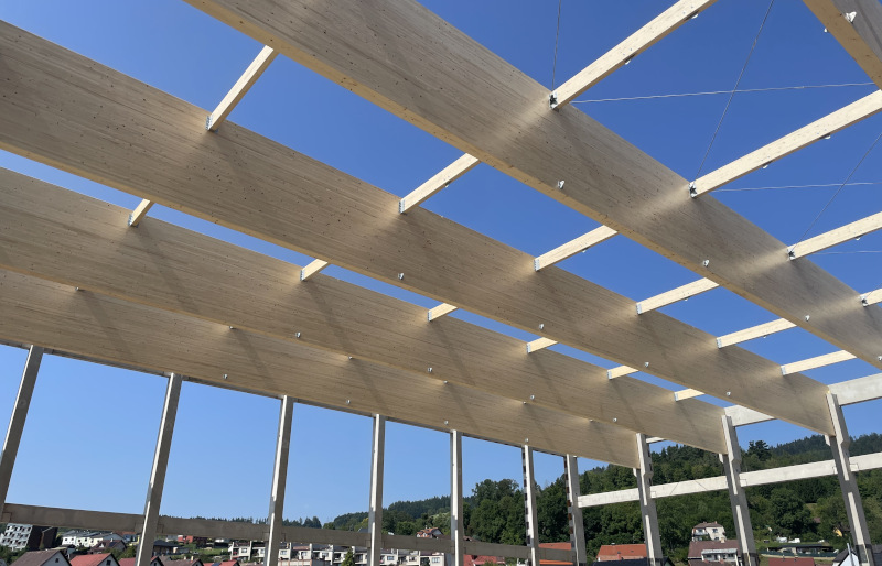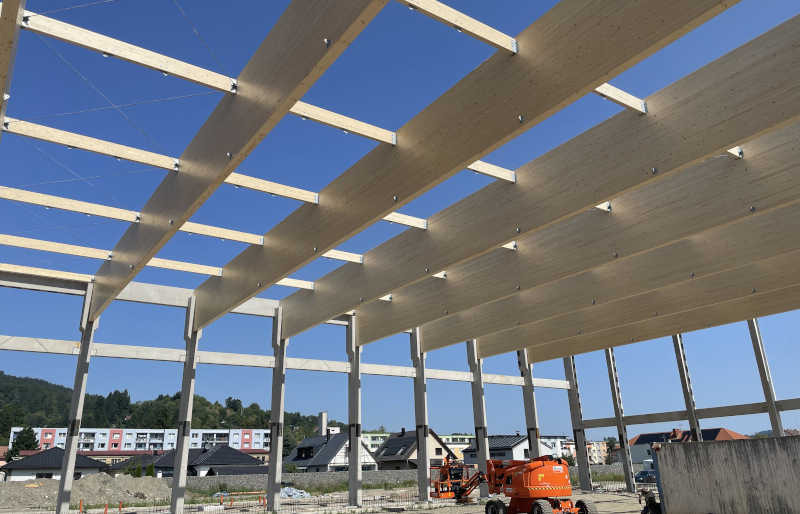 nosnou konstrukci z lepeného lamelového dřeva v přímém provedení a je doplněna o lepená ztužidla.