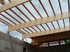 Dřevěná nosná konstrukce střechy bazénu u rodinného domu v Chorušicích u Mělníka je realizována z lepeného lamelového dřeva ...
