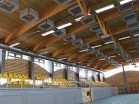 Sportovní hala má nosnou konstrukci z lepeného lamelového dřeva v přímém provedení s proměnou výškou ...