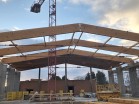 Zastřešení tělocvičny v rámci výstavby nové školy SOUp v Jílovém u Prahy je z lepeného dřeva, masivu a záklopu z OSB desek ...