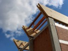 Lepené lamelové vazníky spolu s řezanými vaznicemi a střešním OSB záklopem ...