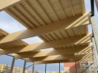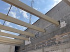 Střešní nosná konstrukce z lepeného lamelového dřeva o rozměrech 200 / 2240 mm,délky 31,68 m ...