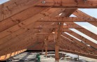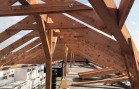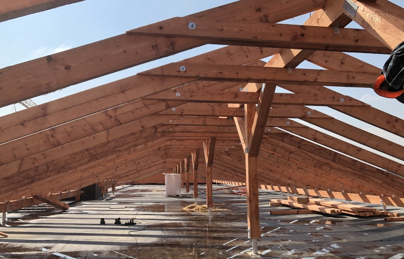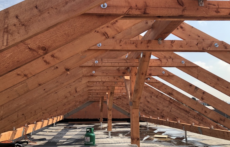 Hlavní nosné prvky tvoří dřevěné řezané vaznice, které jsou podporovány dřevěnými sloupy a kotevními patkami nesenými stropem objektu.
