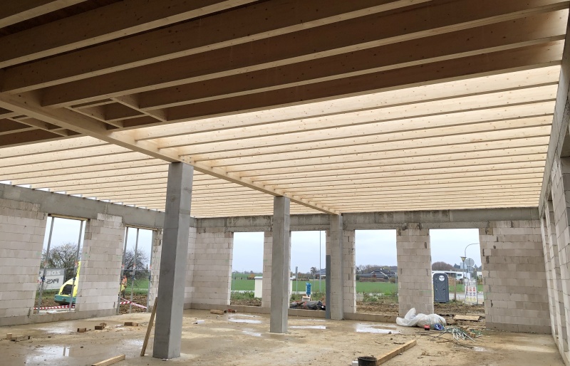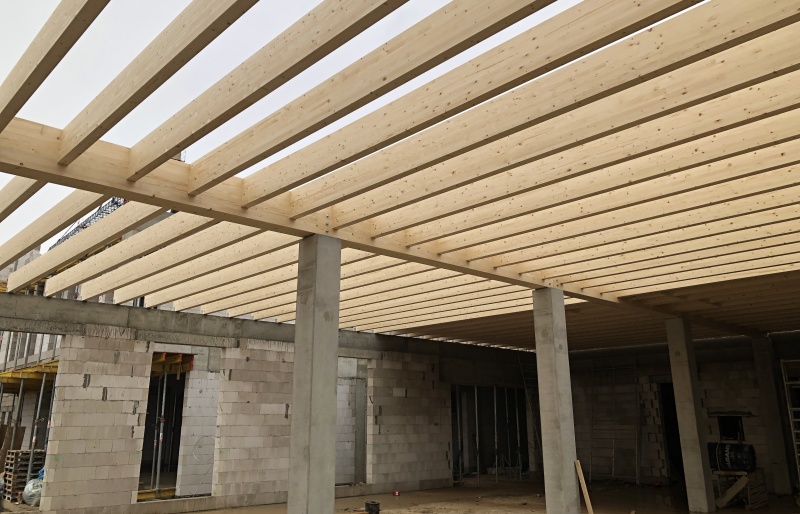 Součástí stavby nové základní školy nedaleko Jesenice u Prahy byly střešní konstrukce dvou tělocvičen a současně objektu jídelny. Na střešní konstrukce jsou použity dřevěné lepené lamelové vazníky doplněné o vyzničky z KVH hranolů nebo z řezaných prvků. Vše je zaklopena klasickým prkeným záklopem.