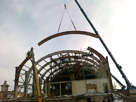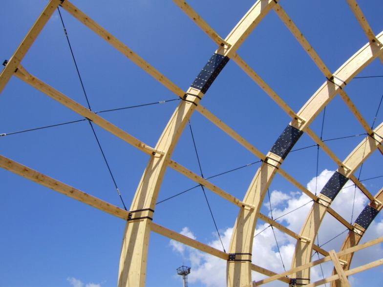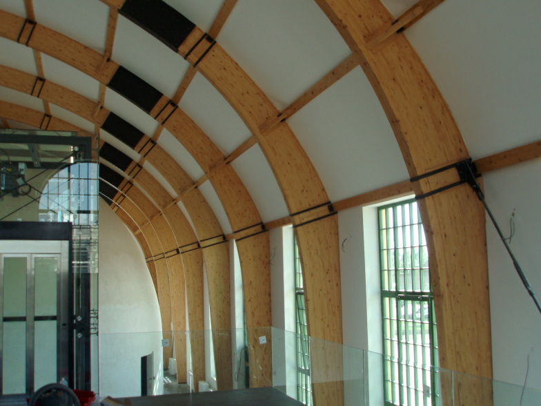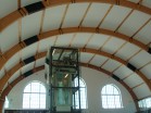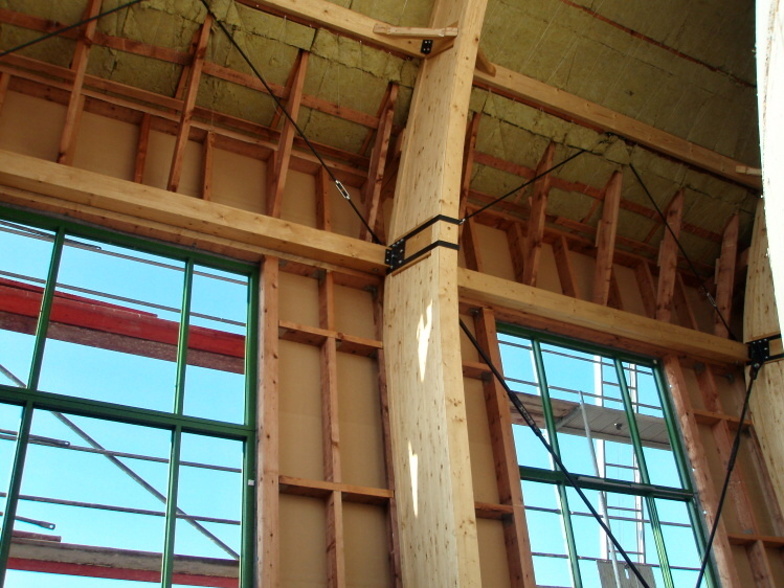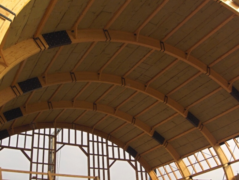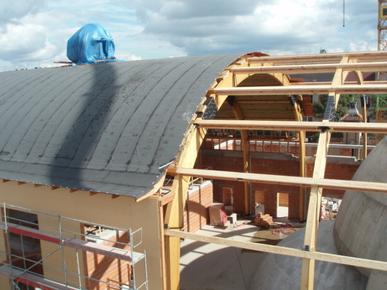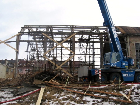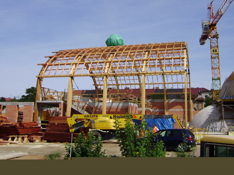 Stavební úpravy v rámci rekonstrukce pro naší společnost znamenaly zejména rozebrání stávající nosné konstrukce objektu s následnou opravou dvou stávajících Hetzerových vazníků a jejich zabudování do rekonstruovaného obkjektu. Ostatních osm kusů Hetzerových rámů bylo zaměněno za nové. Součástí dodávky naší společnosti na této rekonstrukci byly především dodávky dřevěné nosné konstrukce, část střešního pláště bez krytiny a dodávka sendvičových stěn a štítů. Zajímavostí těchto sendvičových dřevěných plášťů je jejich skladba. Ta je navržena, vyrobena a dodána dodána jako difuzně otevřená konstrukce ( DOK ).