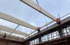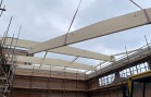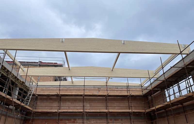Při stávající ZŠ a MŠ v Brně Chrlicích jsme realizovali střešní nosné konstrukce tělocvičny s nezbytným zázemím. Jako nosný prvek je použito lepené lamelové dřevo sedlového tvaru se spodní přímou pásnicí, které jsou délky cca 14,7 m a vytváří nosný systém o půdorysných rozměrech cca 30 x 15 m. Konstrukce je doplněna lepenými dřevěnými ztužidly s ocelovými zavětrovacími kříži ve dvou polích.