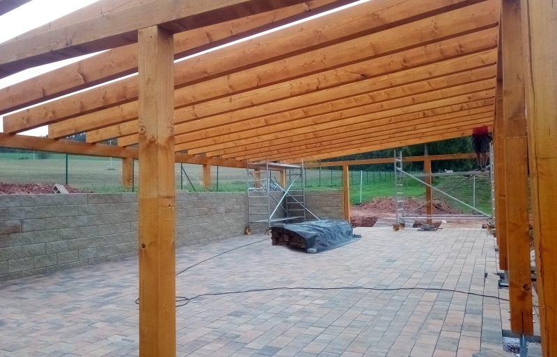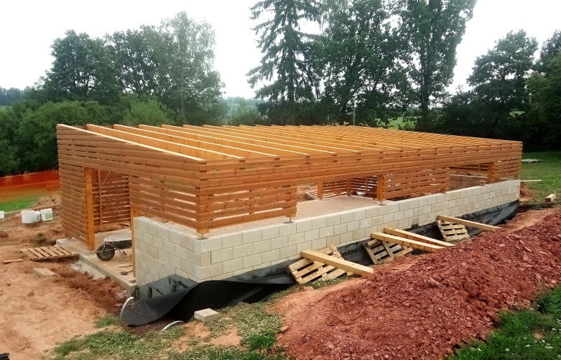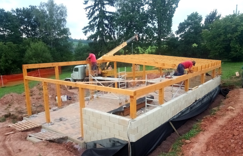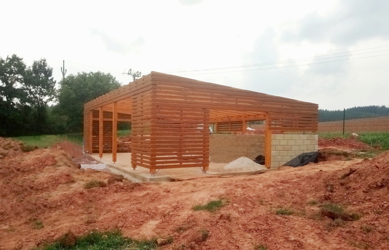 Dřevěný jednopodlažní objekt budoucí otevřené učebny při ZŠ má nosnou konstrukci stěn a střechy z KVH hranolů. Částečné prkenné opláštění na stěnách je provedeno ze dřeva s úpravou THERMOWOOD. Obdélníkový půdorys učebny má rozměry 12 x 7 m.