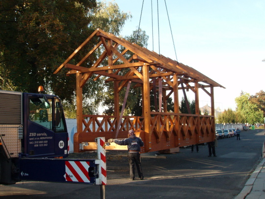 Investor stavby MěÚ v Kralupech nad Vltavou se rozhodl pro realizaci druhé dřevěné lávky v zastavěné oblasti města. Na stavbu této lávky je opět použit modřín, tak jako to bylo při realizaci prvé lávka v r. 2012. Tato dřevěná modřínová lávka včetně zastřešení sedlovou střechou nahrazuje původní železobetonovou lávku. Jedná se o lávku, která převádí pěší komunikaci přes Zákolanský potok.